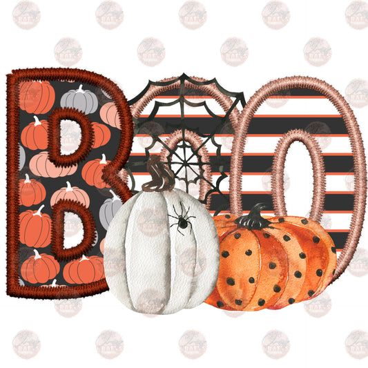Faux Embroidery Boo With Pumpkins Transfer