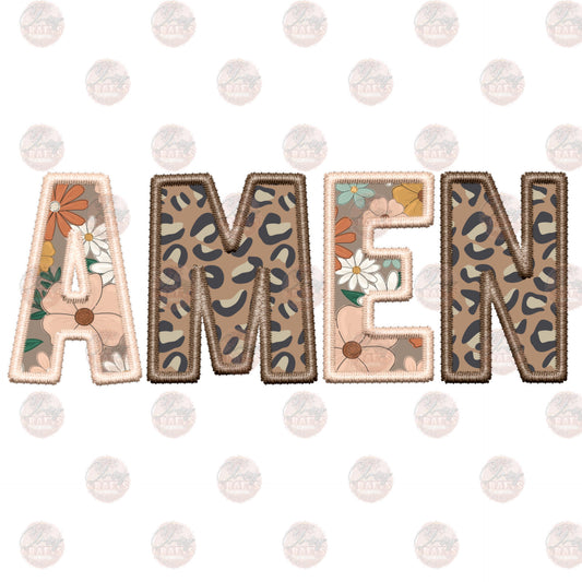 Faux Embroidery Floral & Leopard Amen Transfer