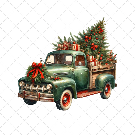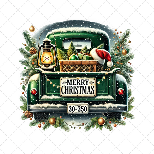 Green Merry Christmas Truck Transfer