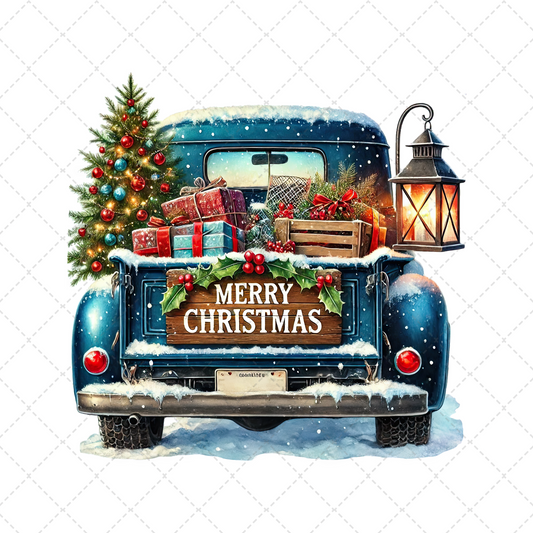 Blue Merry Christmas Truck Transfer