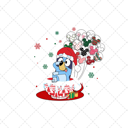 Blue Dog Christmas Balloons Transfer