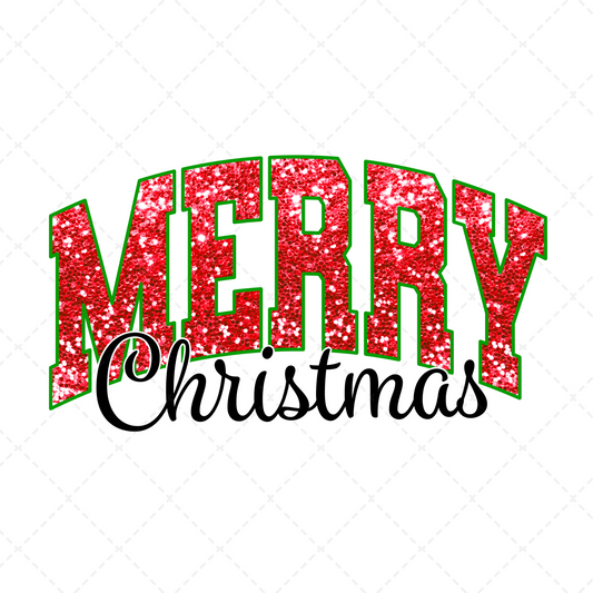 Merry Christmas Red Green Sequin Transfer