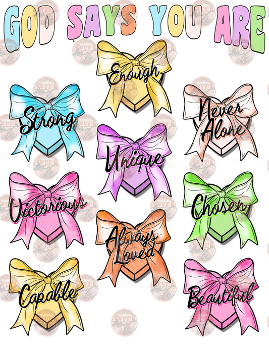God Says You Are Bows Transfer