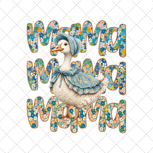 Blue Floral Mama Goose Transfer