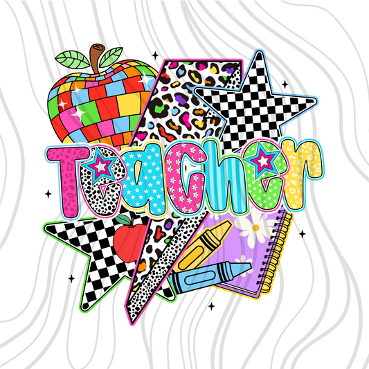 Checkered Neon Teach Transfer