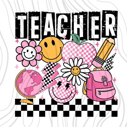Teacher Pink Checkered Transfer