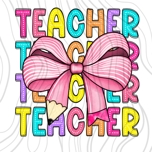 Teacher Coquette Bow Transfer