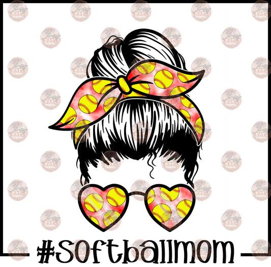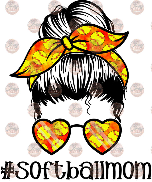 Softball Mom Tie Dye Messy Bun Black Border Transfer