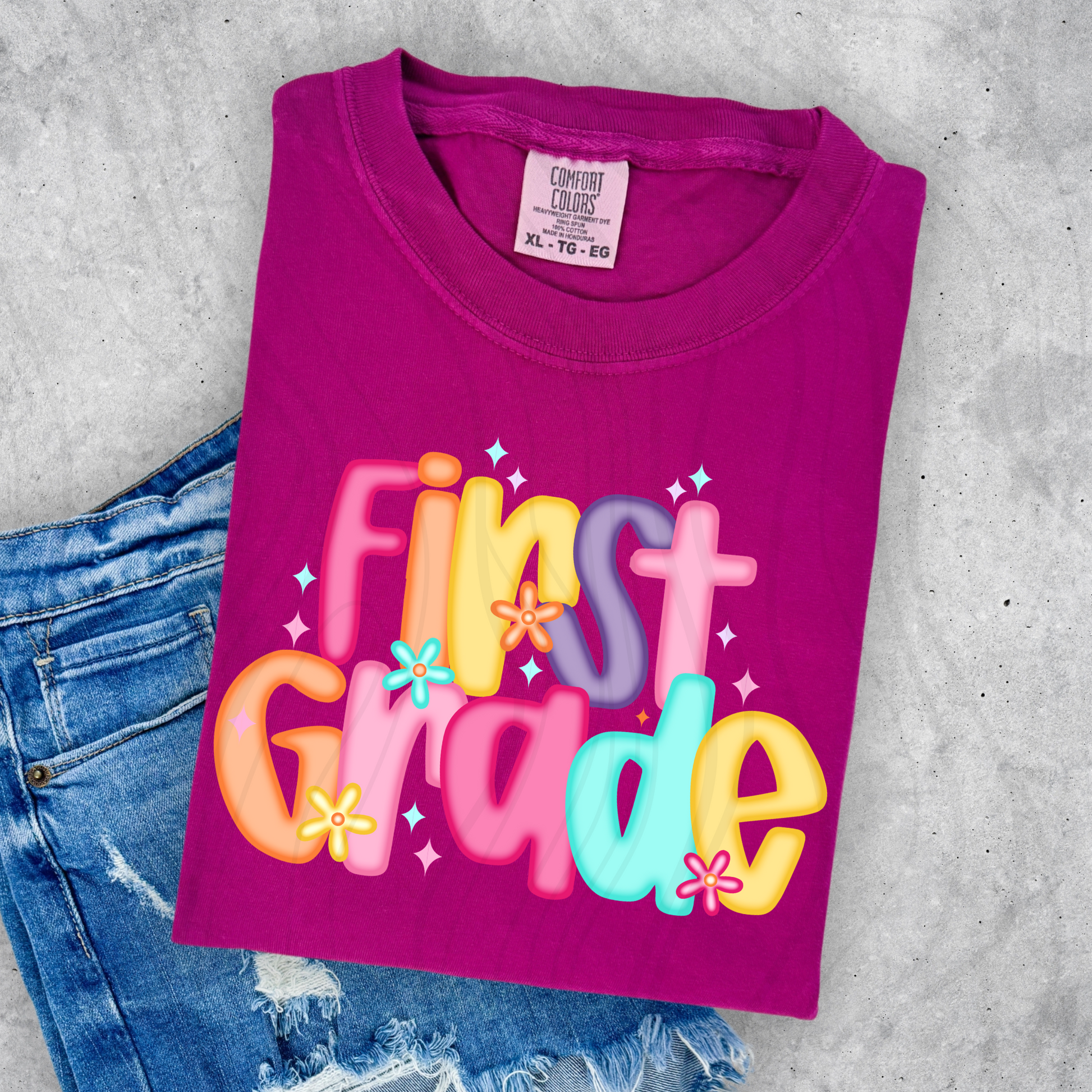 1st Grade Bright Floral Transfer