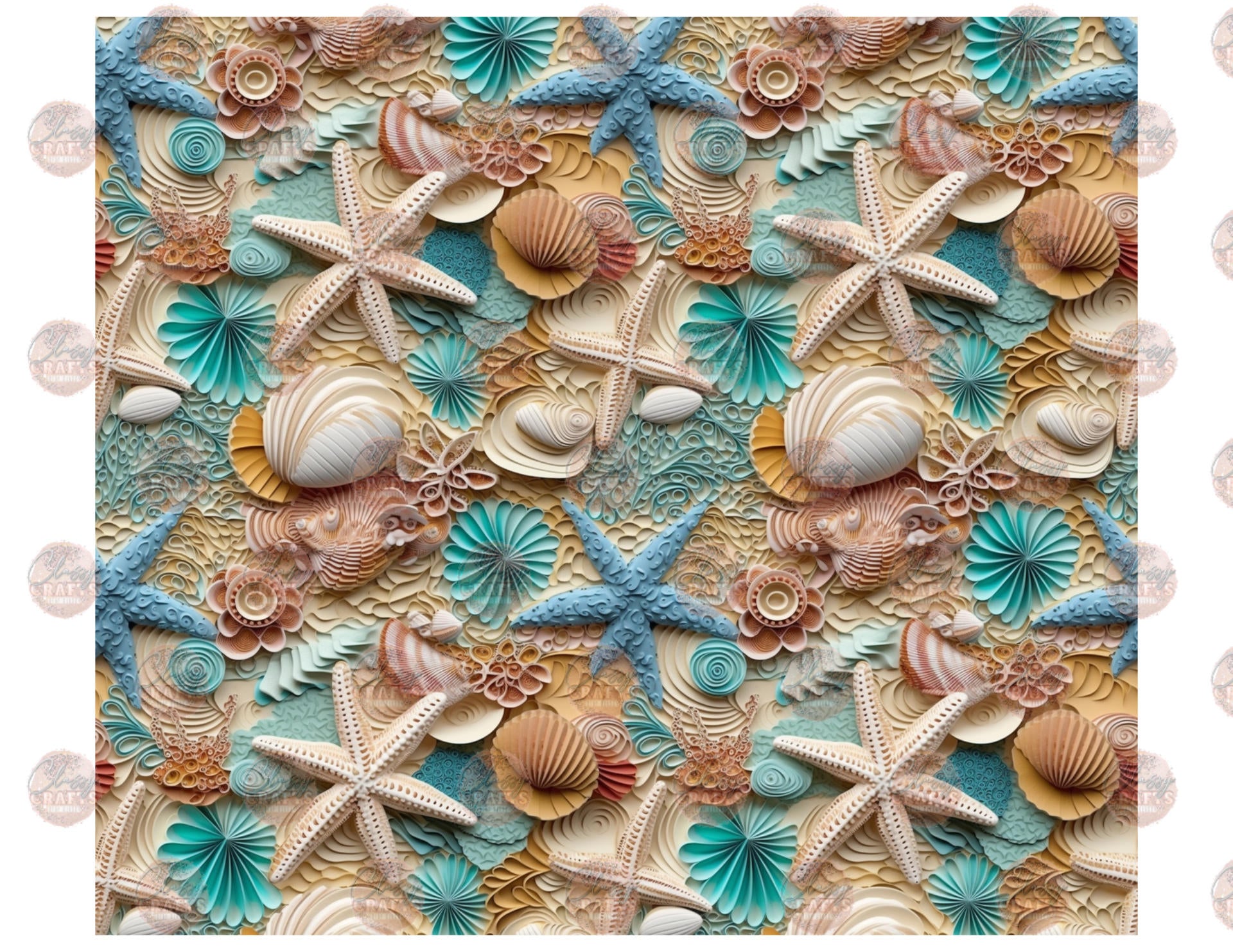 3D Mint Seashells Tumbler Wrap