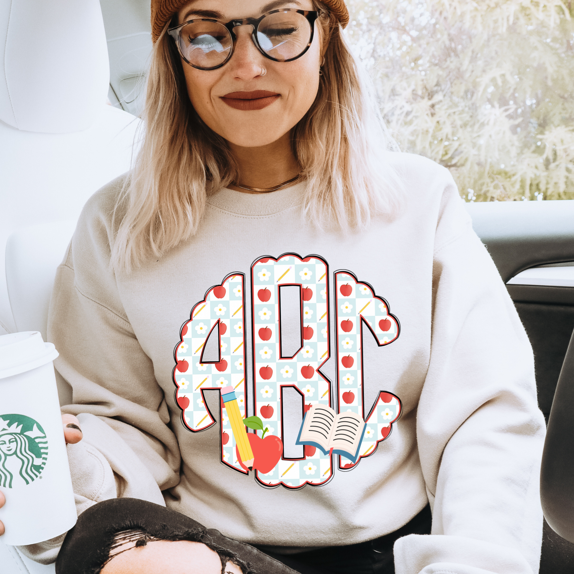 Teacher Apple Pencil Plaid - Custom Monogram Transfer