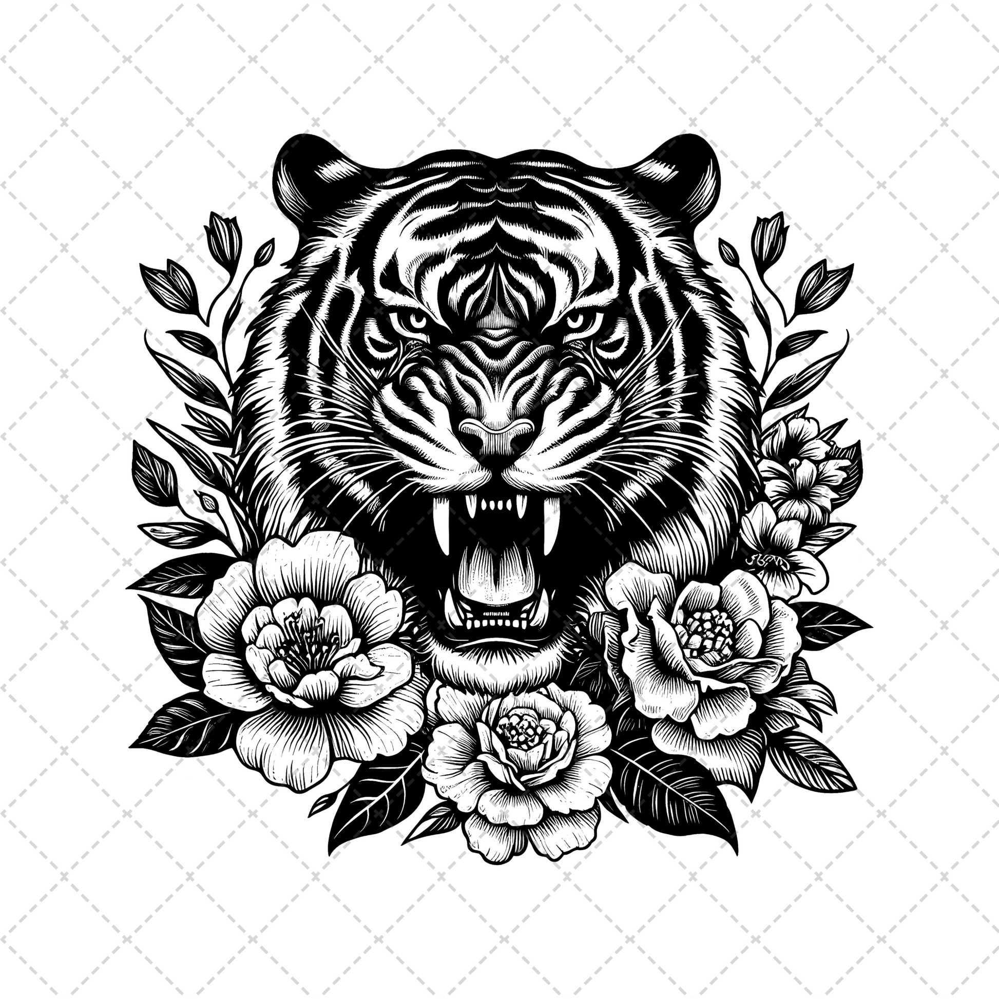 Floral Tiger Roaring Transfer