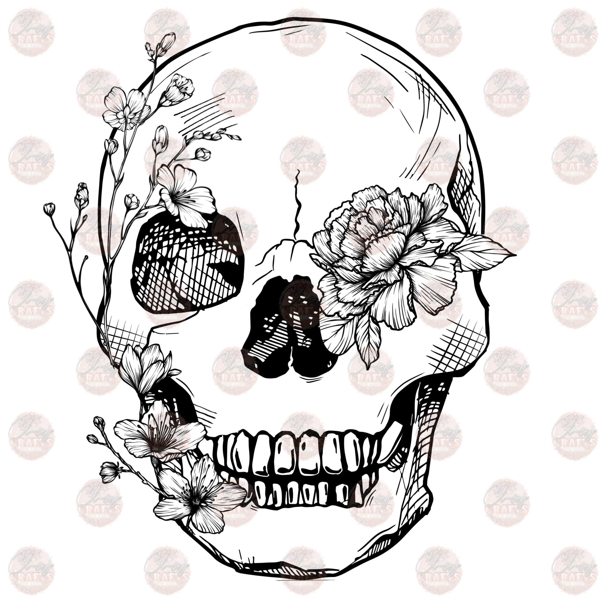 Full Floral Skull Tranfser