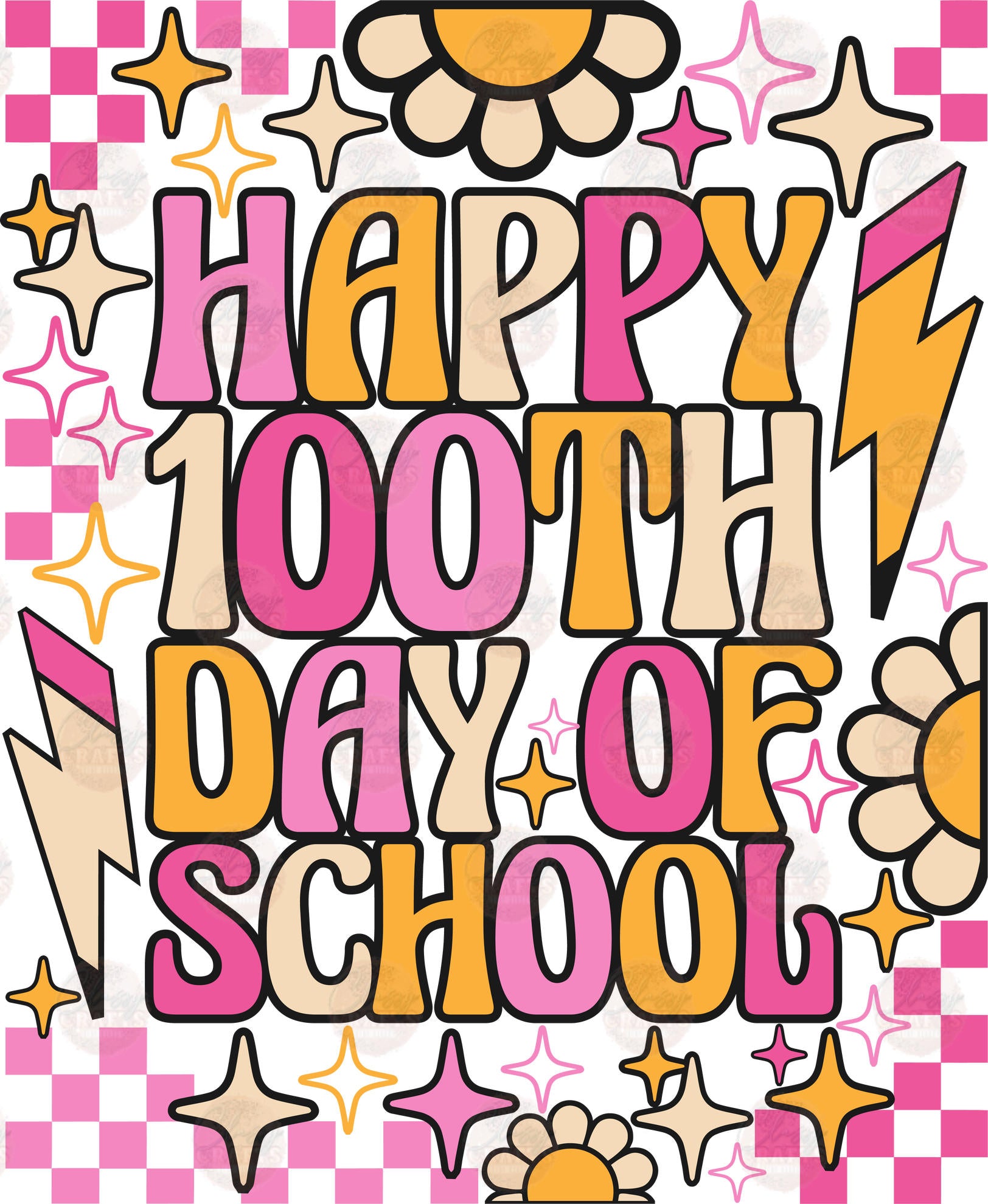 Happy 100th Day Of School Retro Transfer