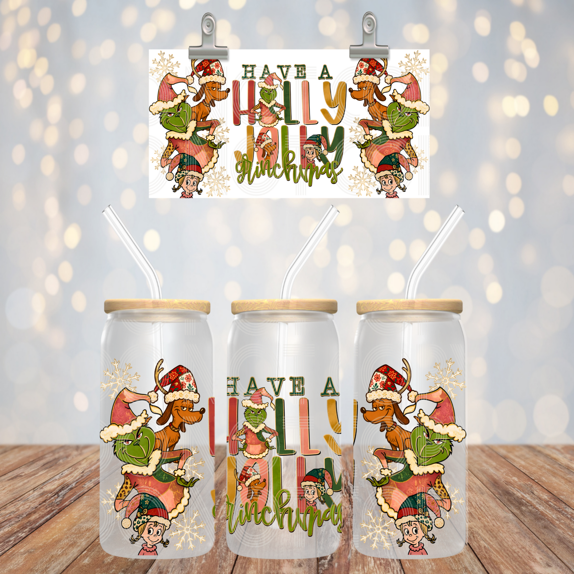 Holly Jolly Gmas Libbey 16 Oz Transfer