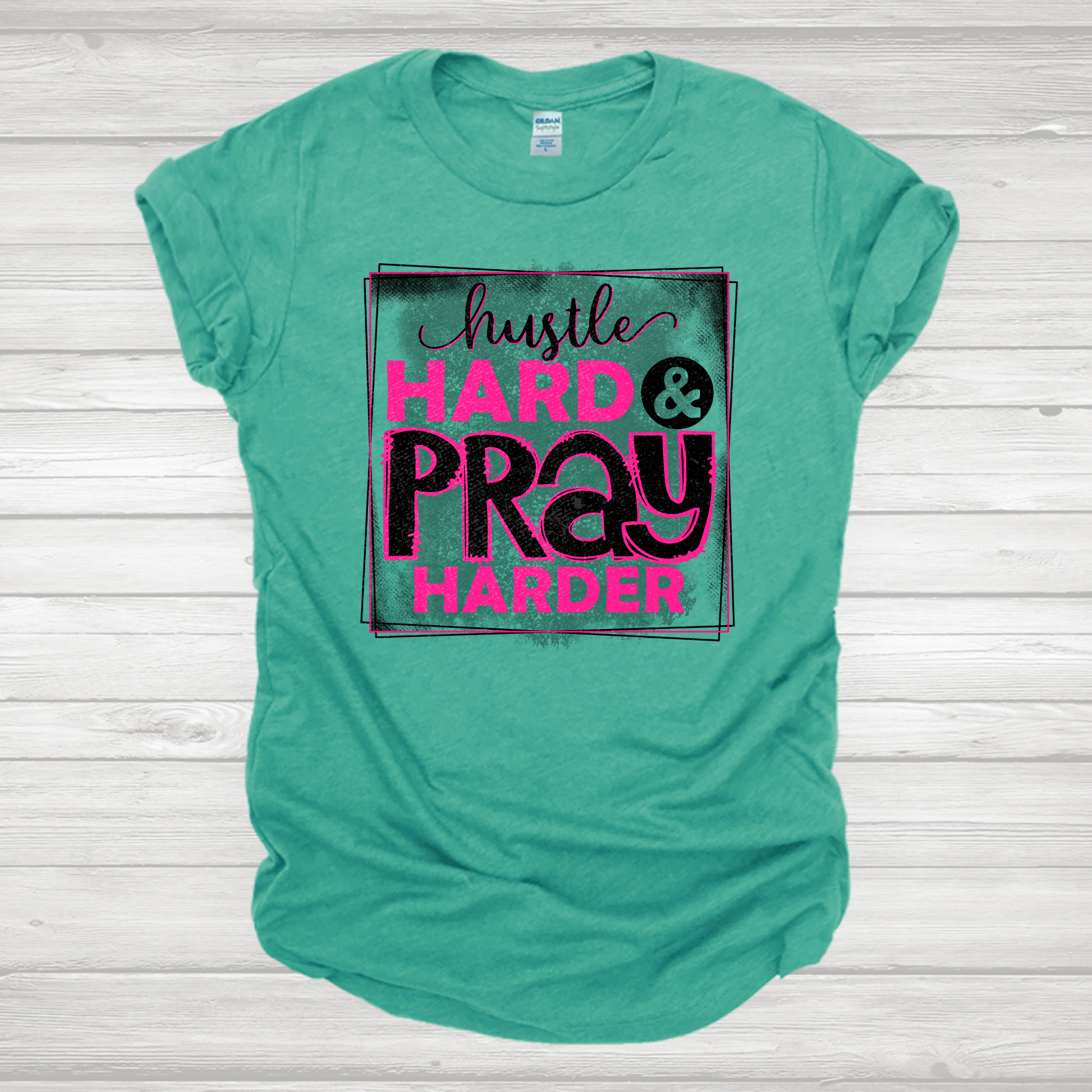 Hustle Hard Pray Harder Hot Pink & Black Transfer