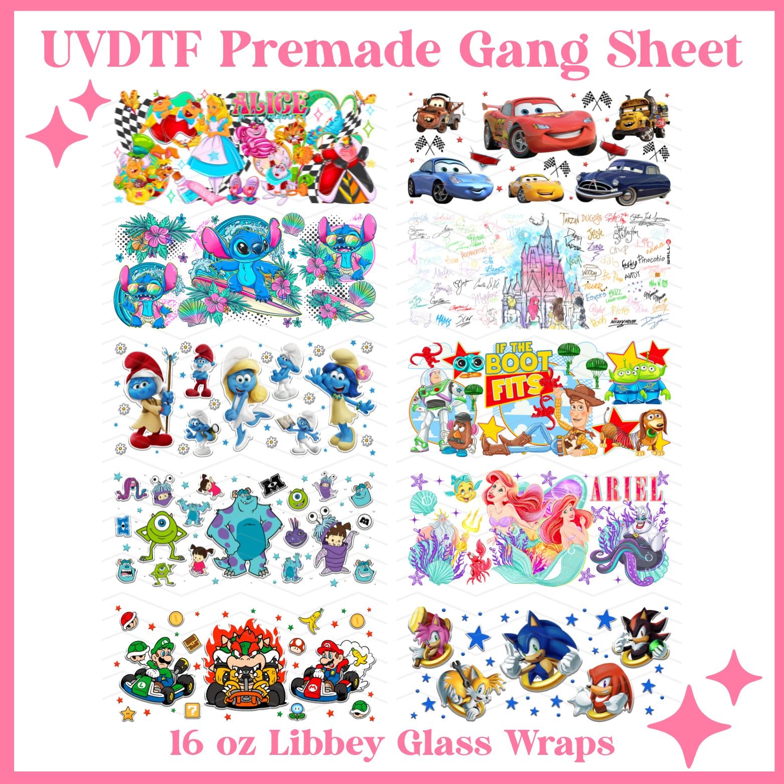 UV Direct-To-Film (UVDTF) is designed for any hard surface — including glass, plastic, wood, and more.