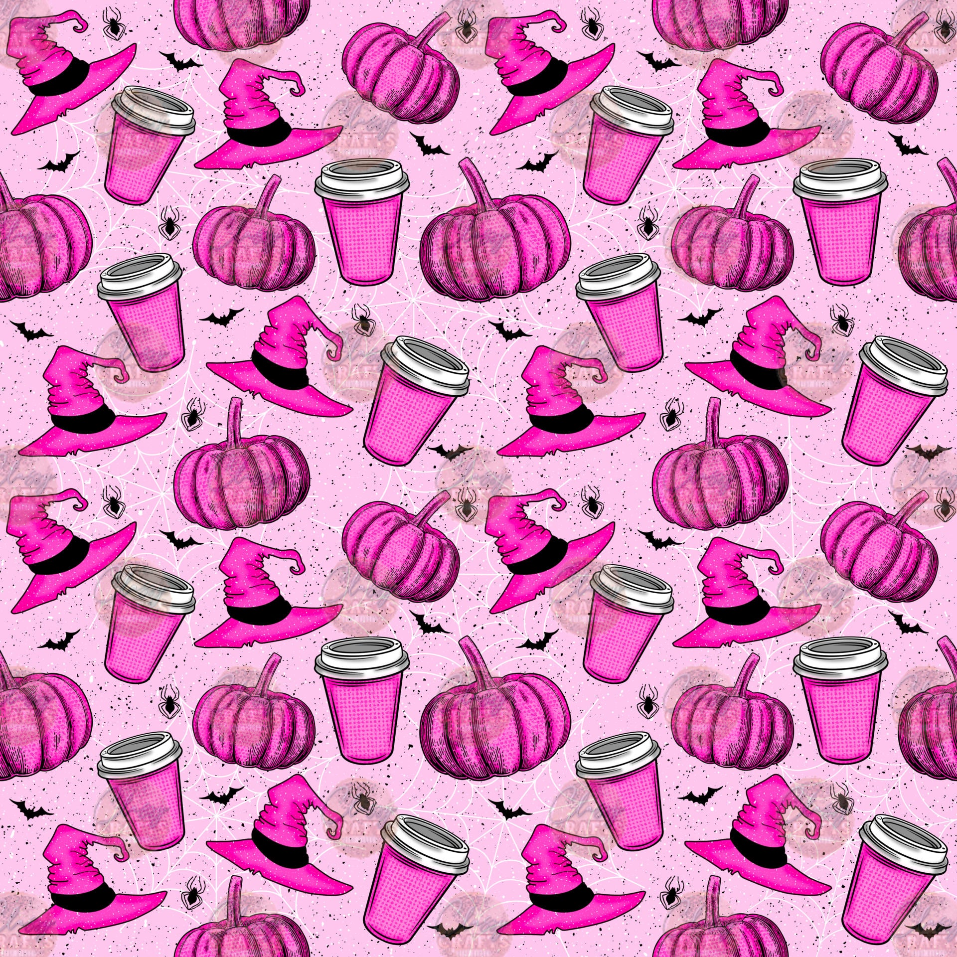 Pumpkin Witch Hat Coffee Hat Pink Seamless 2