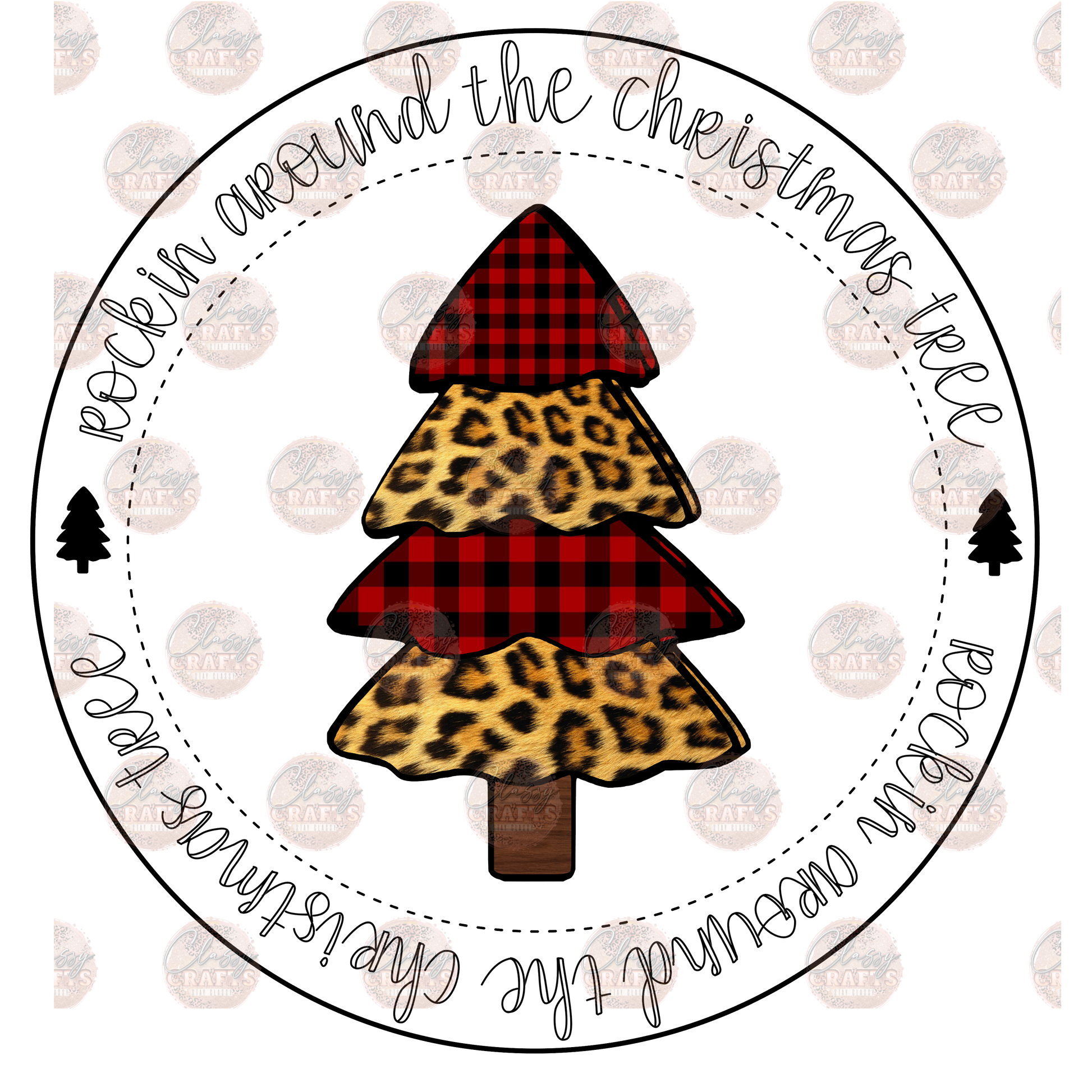 Rockin' Around The Christmas Tree Red Plaid & Cheetah Transfer
