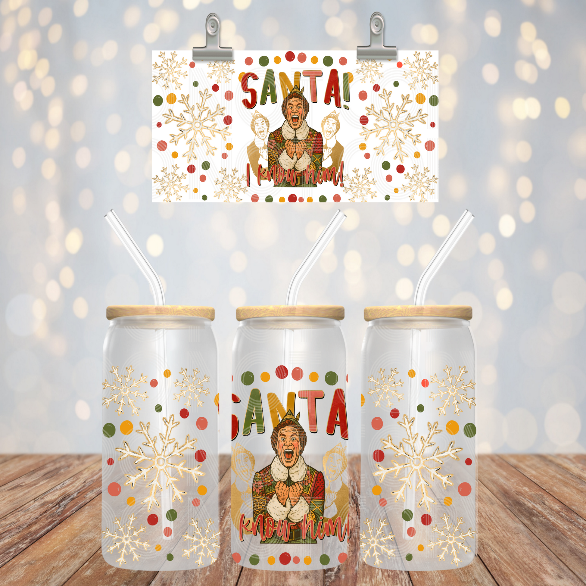 Santa I Know Him Libbey Wrap 16 Oz Transfer
