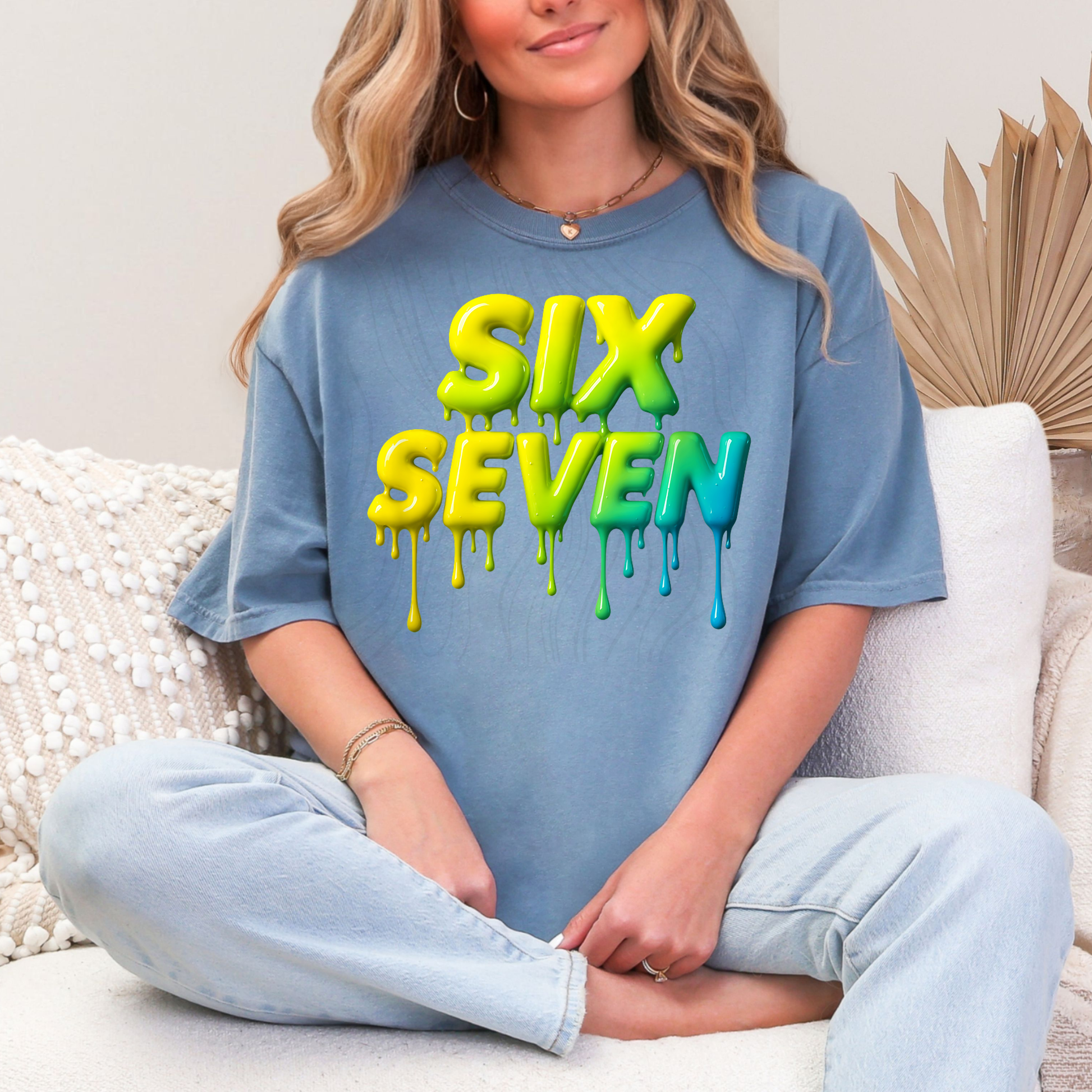 Yellow & Blue 67 Drip Transfer